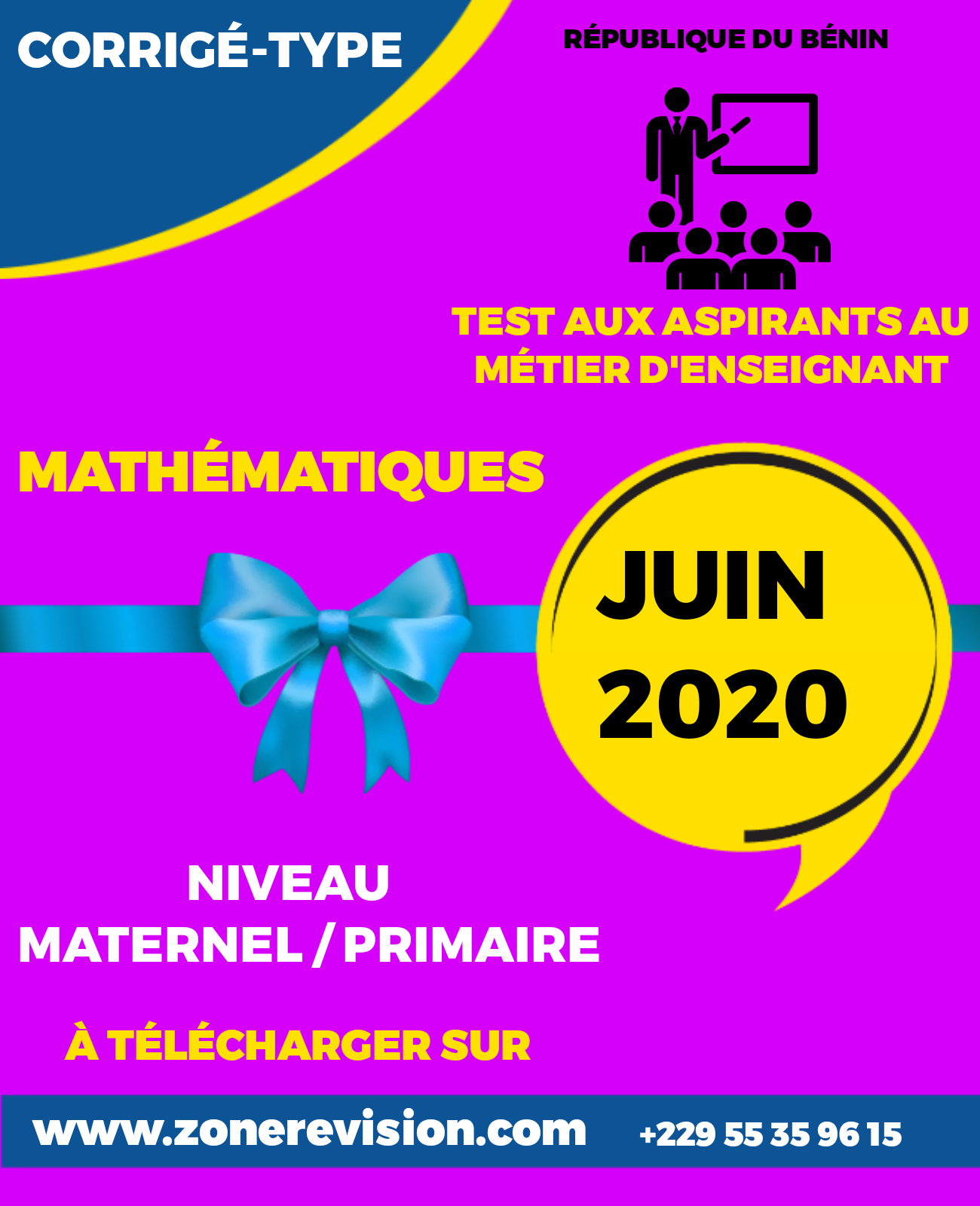 TEST AUX ASPIRANTS AU MÉTIER D'ENSEIGNANT PRIMAIRE JUIN 2020 MATHS (LE CORRIGÉ)